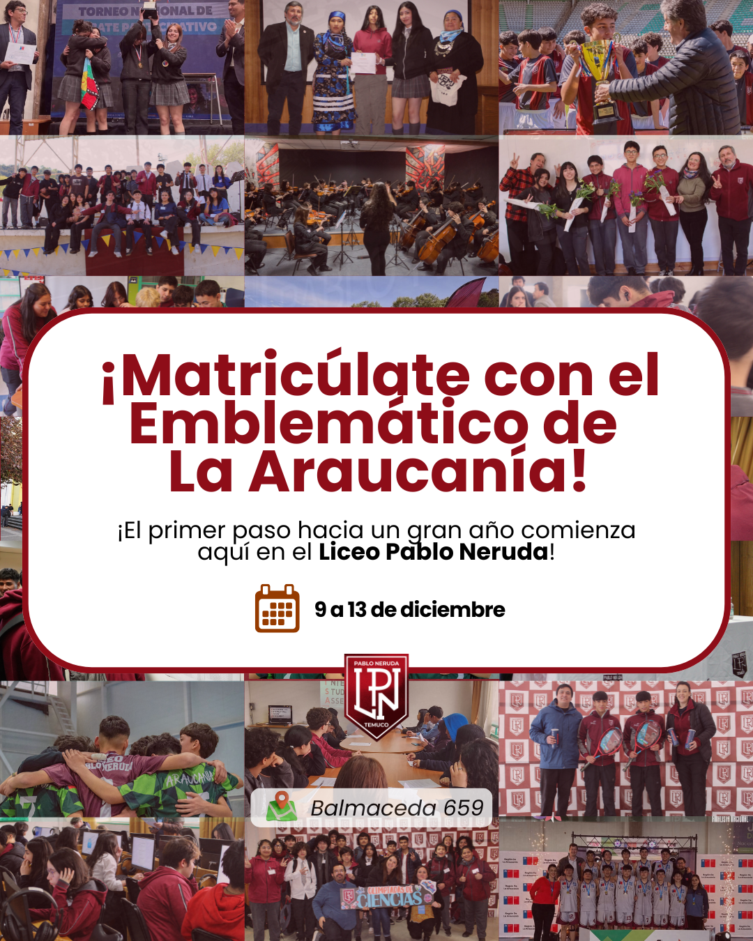 • 17 de diciembre: 3° medios A–G → matrícula para 4° medio 2026.